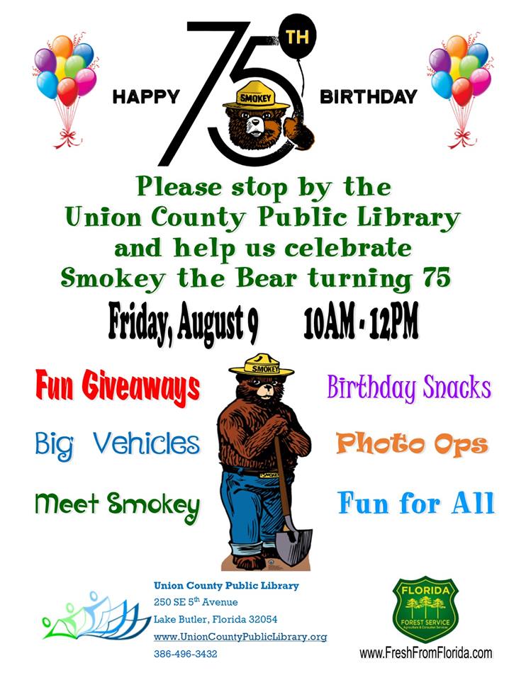 Union County Public Library to Celebrate Smokey the Bear’s 75th Birthday August 1, 2019August 1, 2019 LBCP