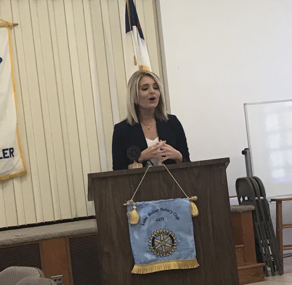 Tommy Spires introduced Kelsey Harrison as our guest speaker for the Tuesday, December 10, 2019 luncheon meeting. She related her experiences as a White House Intern that included how she became an intern, some of her memorable experiences as an intern and her work with the nonprofit “Celebration of Abilities”. Her presentation was terrific and upbeat! She displayed a zest for life and was very comfortable telling us about the help congressman Ted Yoho provided to her to get the White House Internship and her face to face meeting with President Trump. Based upon Kelsey’s White House experiences, her education as a graduate student at the University of North Florida specializing in communications, and her nonprofit work with the “Celebration of Disabilities”, I believe Kelsey Harrison will put Lake Butler, Florida on the map one day soon again working in the White House!
