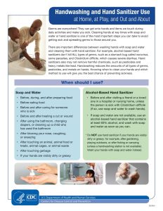 • Carry and use a minimum of 60% alcohol-based hand sanitizer