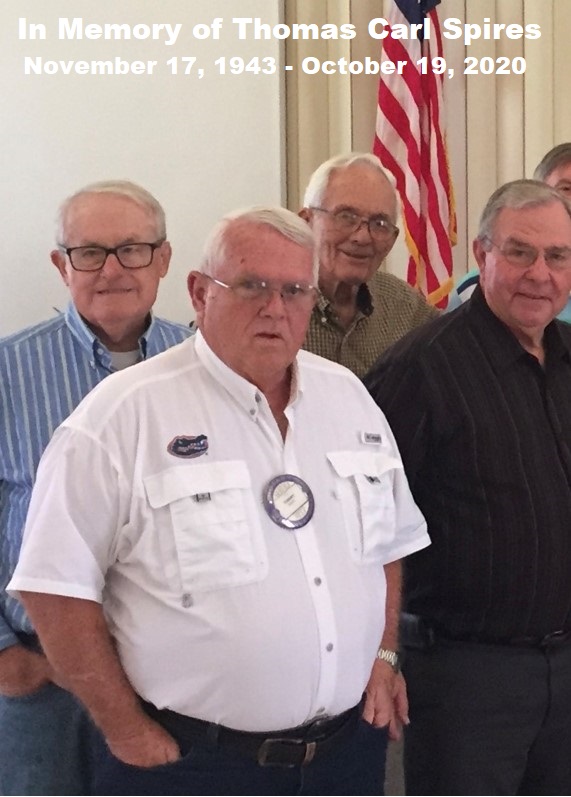 Following another excellent luncheon meal and fellowship, Club President Shane Collins opened the meeting with the sad news that Tommy Spires, a 34-year member, Paul Harris Fellow, and 2003-2004 Past Lake Butler Club President, passed Monday morning, October 19, 2020. After a moment of silence, Art Peterson led with a prayer for the Spires’ Family. In our Club’s Program Brian Reagan published the following: Tommy Spires 17 Nov 1943-19 Oct 2020, Rotarian from 1 Oct 1986 to 19 Nov 2020, Paul Harris Fellow 13 May 2004, Lake Butler Rotary Club #4372 President July 1, 2003 to June 30, 2004. Using an adaptation of the Rotary International Motto, “He served others and profited most because he served and valued others above self” was a very fitting Rotarian tribute for Tommy Spires. Tommy’s viewing 4-7 PM Thursday, 10-22-20 (Outdoors behind the First Christian Church) and Funeral 10:30 AM Friday (Outdoors same location as the viewing).